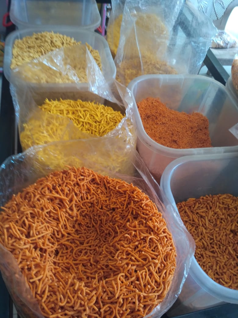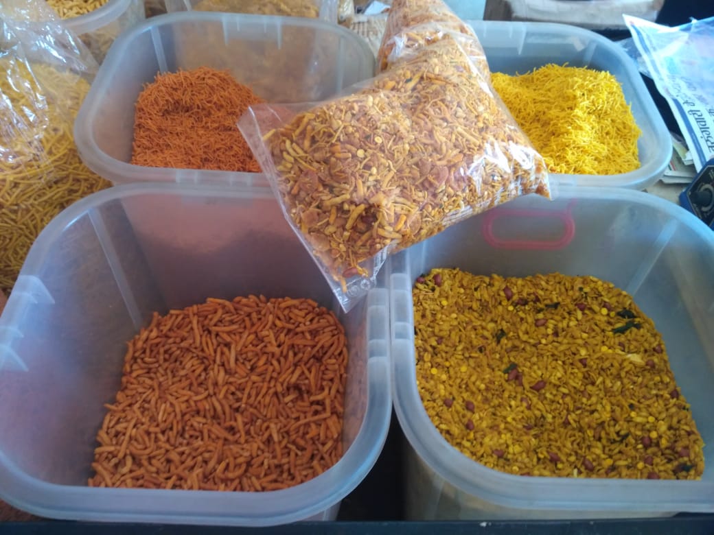Farsan, chiwda, shev, murmura, PaniPuri, chutney, masale, sticks, bhakarwadi, shankarpala, khakra, kela weffars, banana weffars, sp. soanpapdi, chocolates, chakli, bhajani, upwas chiwda, rajgira, nankatai, Chikki, futana, peanut, papad, biscuits, chanajor